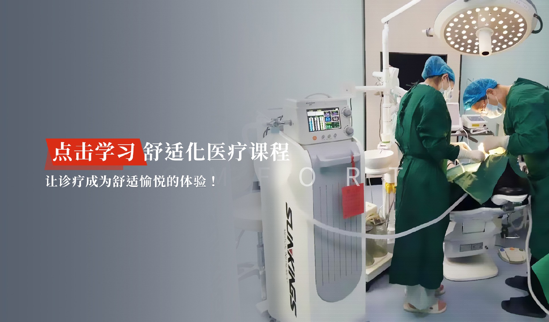 舒適醫(yī)療是讓患者在沒(méi)有痛苦和恐懼的環(huán)境下就診、檢查及治療,使就醫(yī)成為一個(gè)愉快和舒適的過(guò)程
